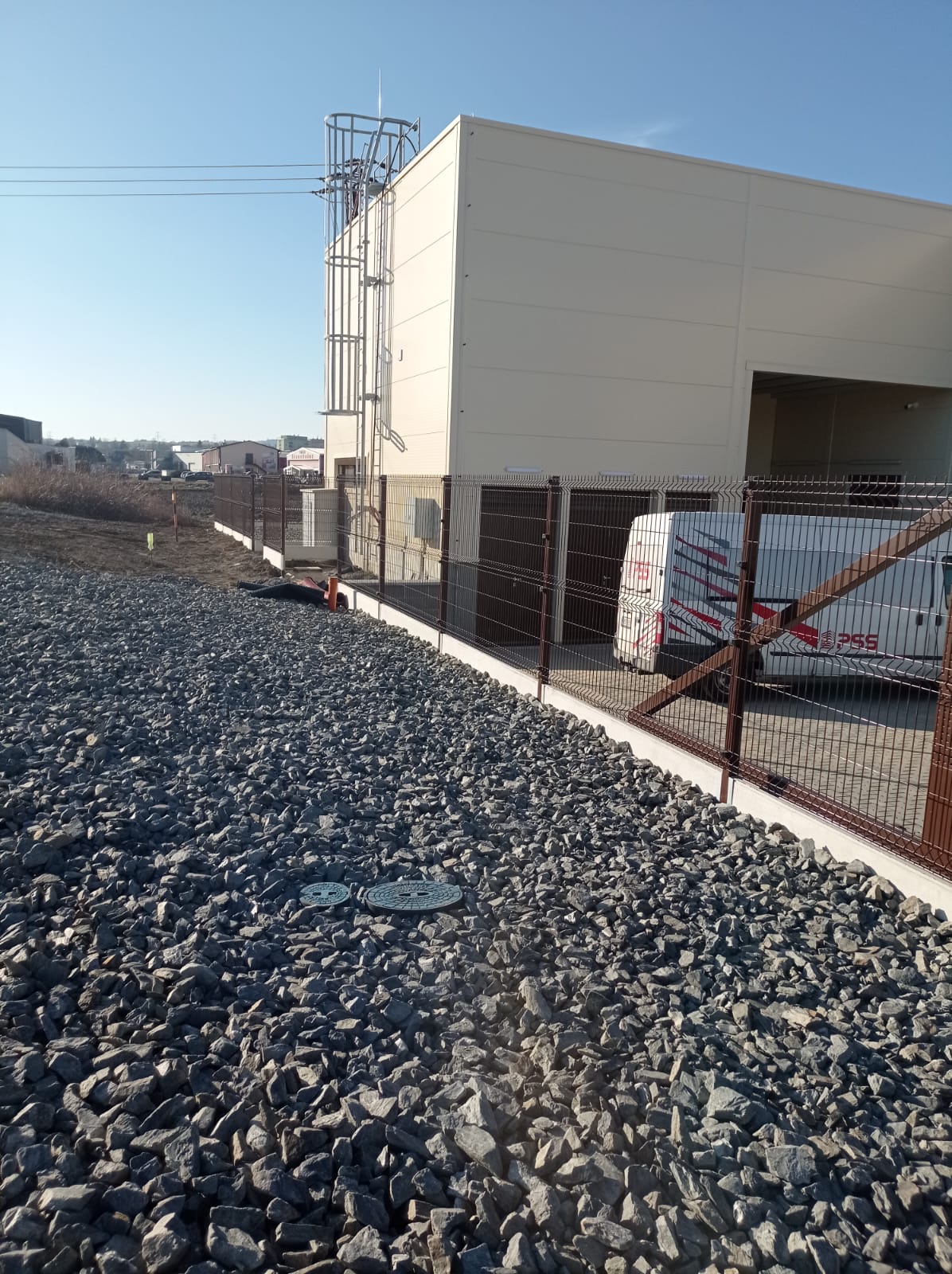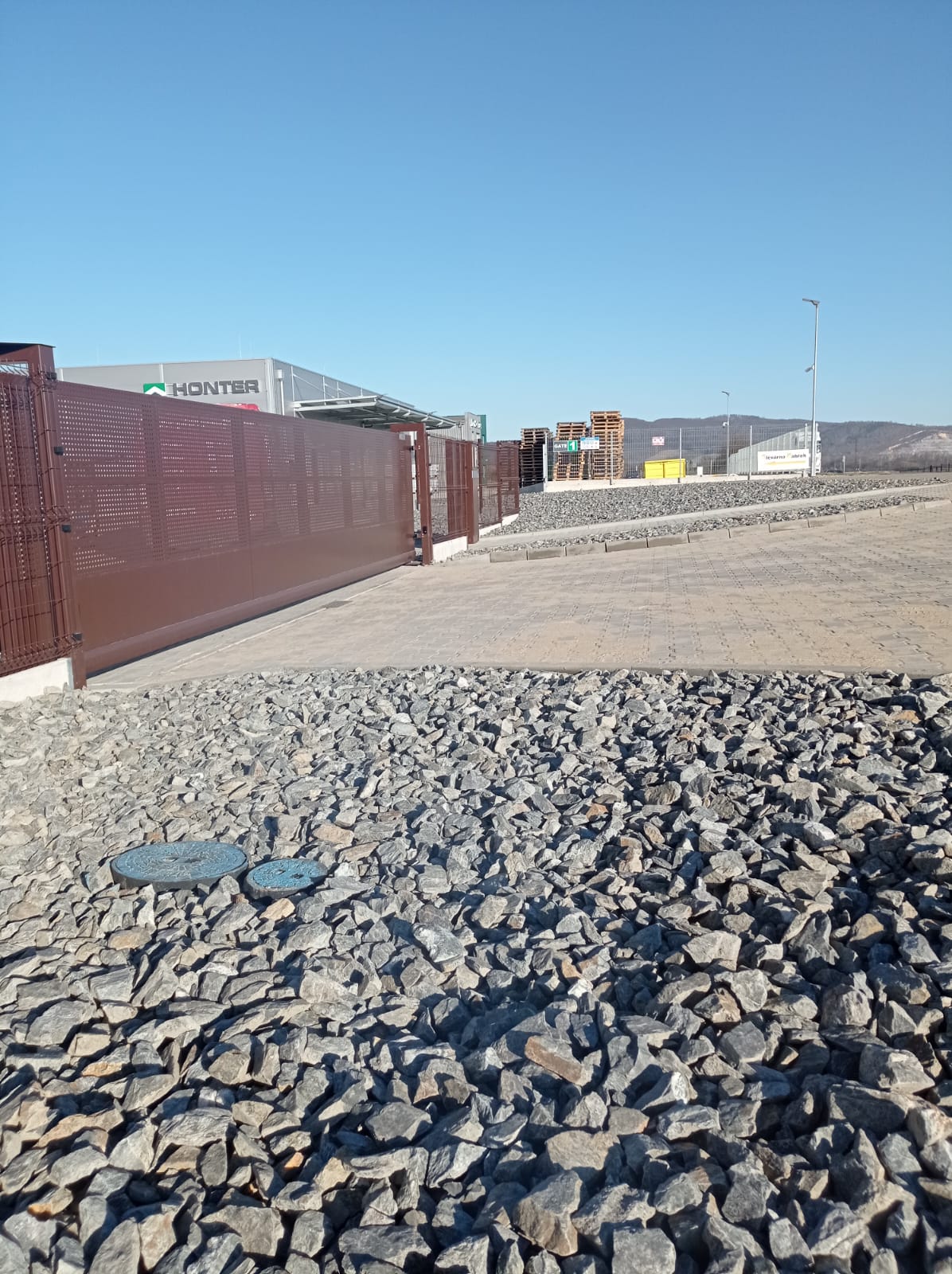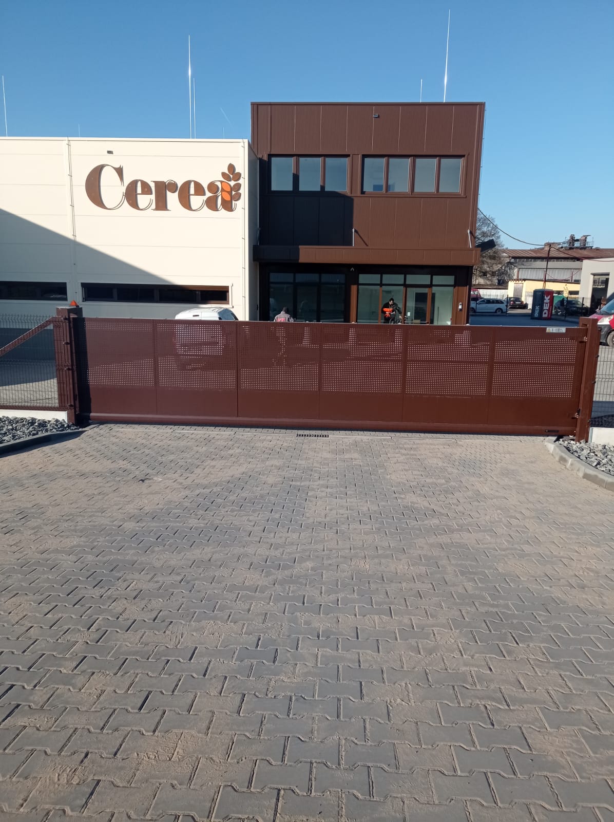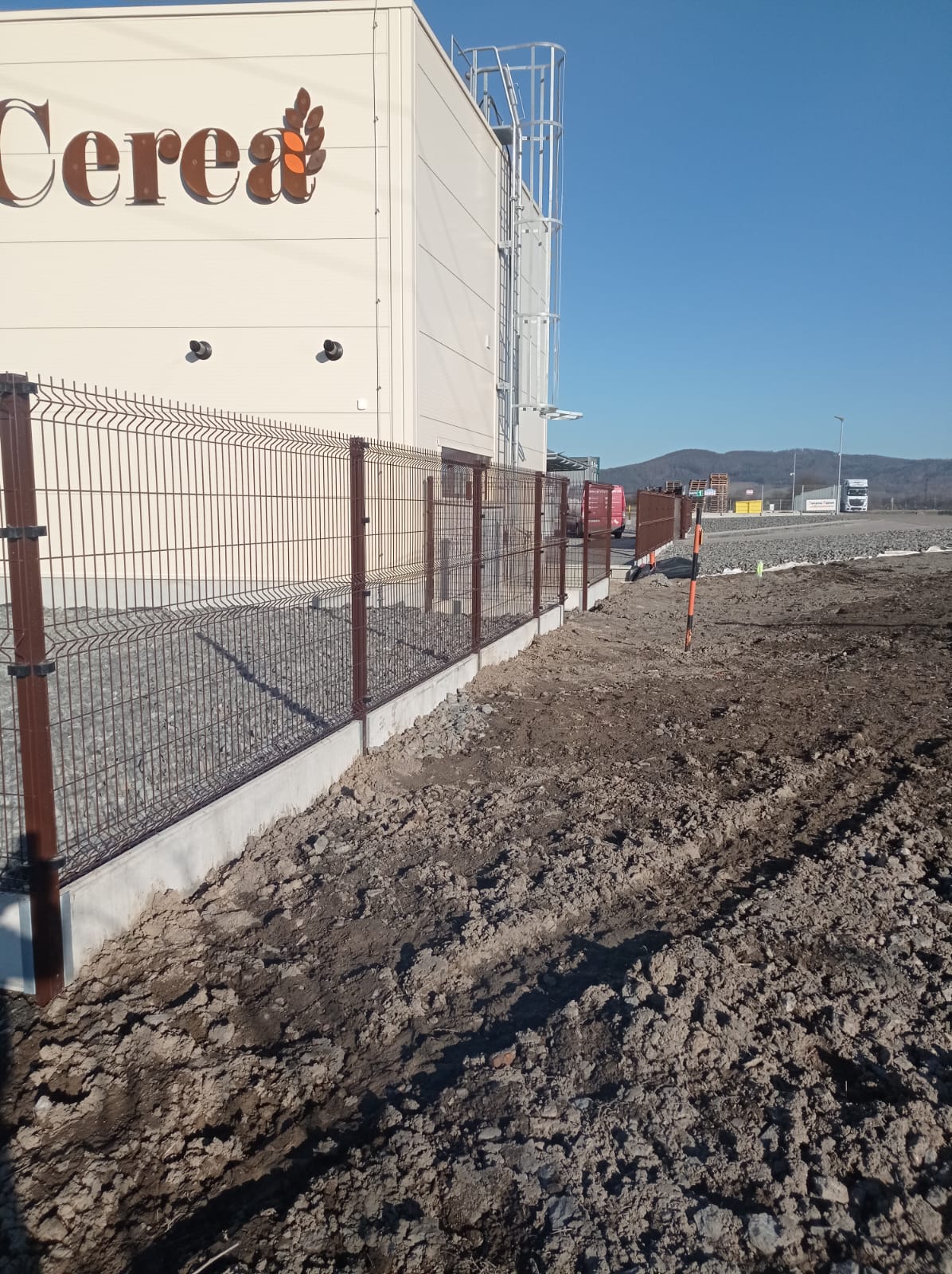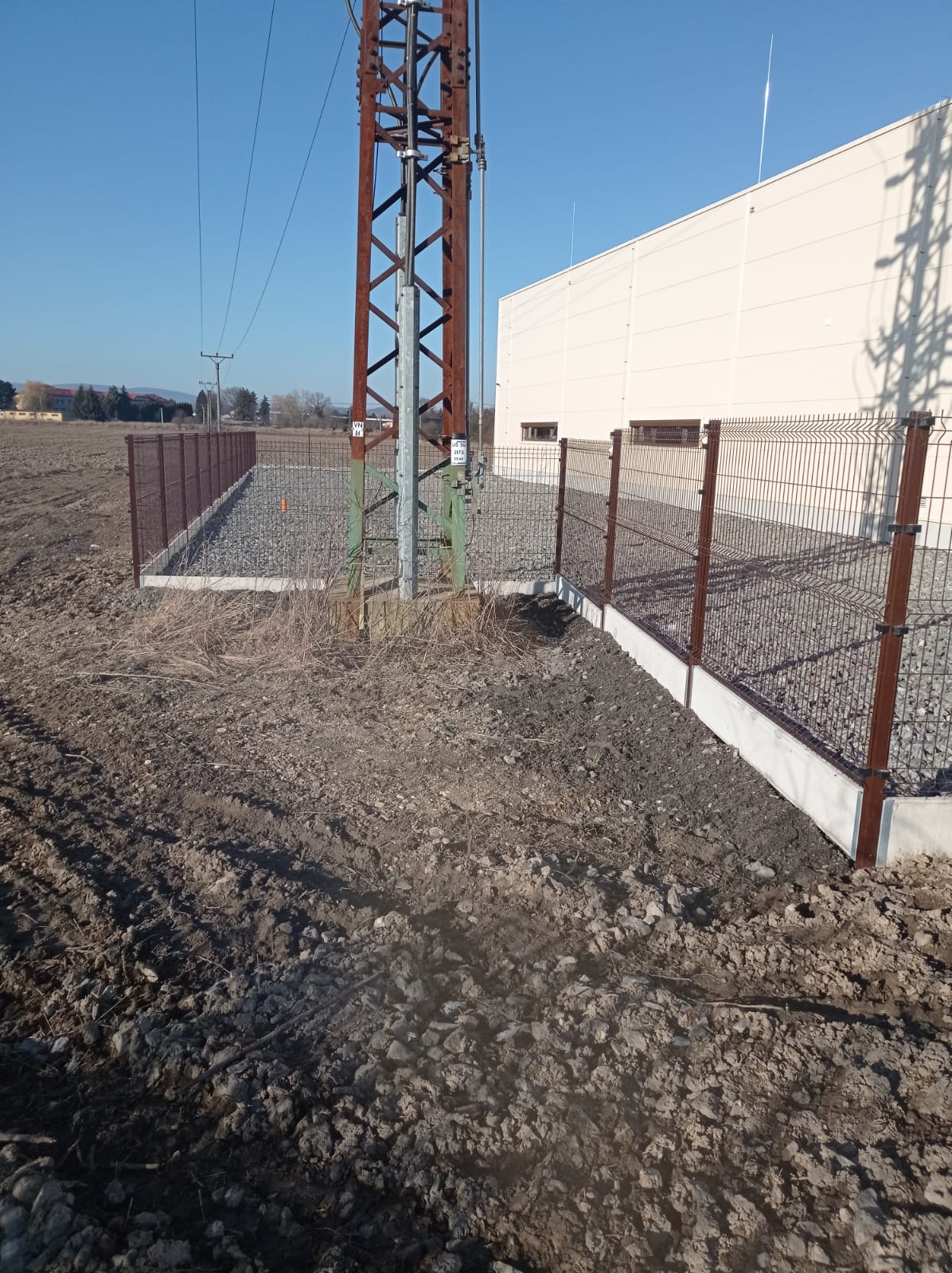 Oplocení svařovaným panelem 3D Classic výška 1530mmm v atipickém odsínu RAL 8017 . Automatická posuvná Brána 7500x1700 mm . Branka se sloupkem multibox.